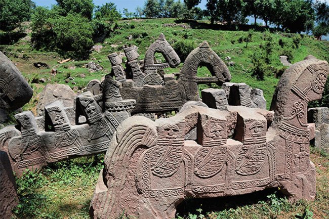 «Здесь было обнаружено два ритуальных комплекса, это далеко и высоко в горах, куда непросто доехать. Были найдены святилища около 200 каменных всадников, причем их специфика в том, что порой на лошади сидит не один человек, а два, три или четыре человека.