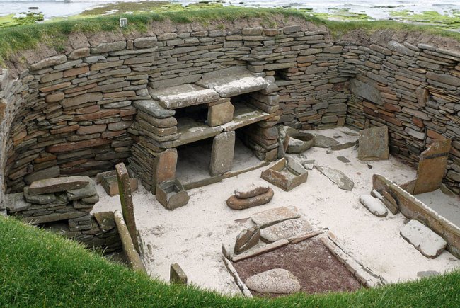 Недоумение усилилось, когда удалось проникнуть внутрь первого строения -каменные кровати, судя по их длине, могли приютить только ребенка. И тут ученого осенило: на самом деле это не поселок пиктов, здесь жили представители какой-то другой народности, а возраст домов относится к эпохе неолита и датируется 3100-2500 годами до нашей эры. Кстати, в 1970-х годах ученые с помощью радиоуглеродного анализа подтвердили догадку профессора Чайлда.
