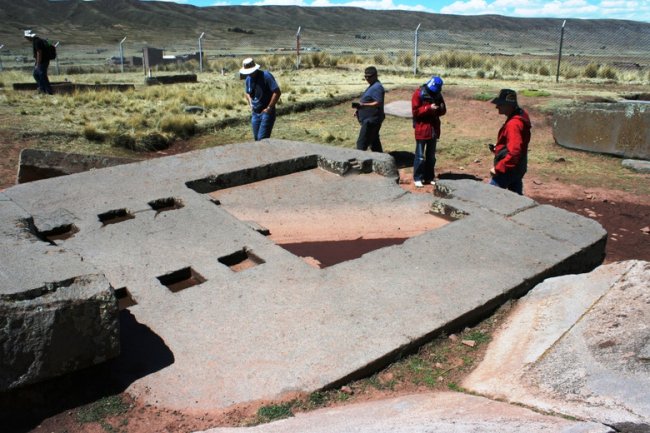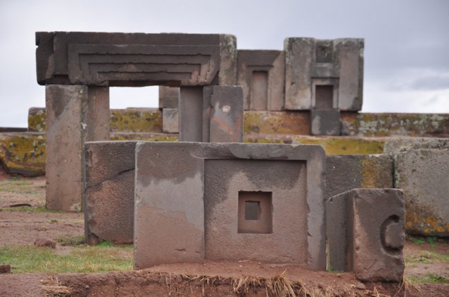 Когда-то Пума Пунку стоял на насыпном холме, говорят археологи. Некоторые добавляют — на искусственном глиняном холме. Постройки на холме окружали мощные каменные стены, собранные, как в детском конструкторе, из однотипных каменных блоков. За стенами располагались странные сооружения, имевшие Т-образную форму.