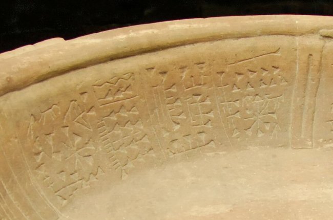 Артефакт имеет золотистокоричневый цвет, весь покрыт рисунками и был, вероятно, ритуальным предметом. Самое главное — на чаше есть надпись. Именно из-за нее артефакт долгое время пролежал в запасниках музея. Надпись, как с удивлением определили археологи, выполнена на языке, очень сходном… с шумерским!