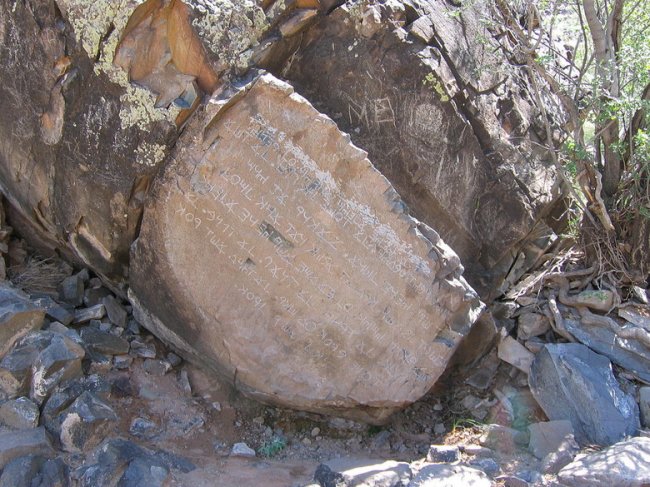 В 1933 году у подножия плато неподалеку от американского городка Лос-Лунас была сделана удивительная находка. Речь идет о гигантском валуне массой 85 тонн, на котором были высечены 10 заповедей Моисея. Камень с библейскими надписями находится в Скрытом нагорье. Местные жители прозвали это место «скалой тайн».