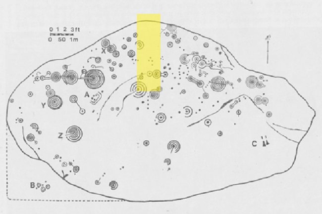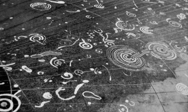 Находка стала сенсацией и местом паломничества. И не удивительно: на каменной плите размером 18 на 9 метров располагались около сотни символов — спиралей, точек, кругов, полукругов. Кто-то нанес их. Как минимум, 5 тысяч лет назад.