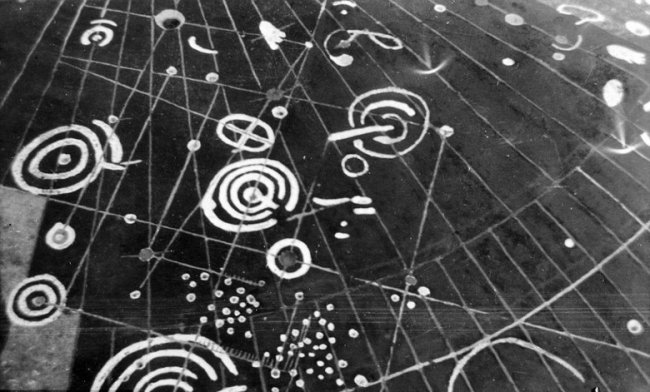 Кто изобразил? Пришельцы наверное, которые по какой-то причине остались на Земле. Может быть, аварию потерпели. Но решили оставить информацию о себе — в виде карты. Не исключено, что на ней указано, где искать планету пришельцев.