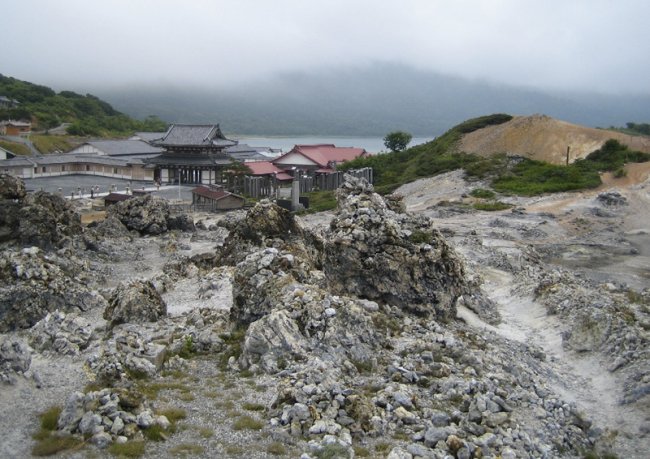 Окружающий пейзаж напоминает описания буддистского ада и рая, включая восемь пиков и реку Санзу но Кава, которую пересекают мертвые души на их пути к загробной жизни. Гора же считается вратами в загробную жизнь.