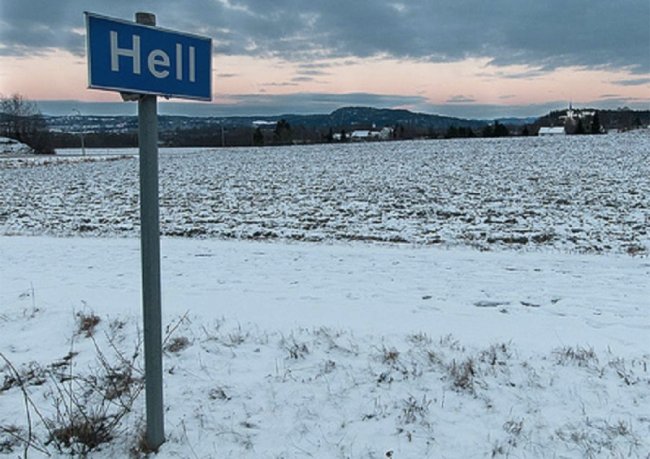 Норвегия – холодная северная страна, однако, если взглянуть на карту, можно обнаружить, что ад расположен именно здесь. Волей судьбы или чьей то злой шутки городок с населением в 1500 человек получил название hell, что в переводе с английского означает «ад». В отличие от общепринятых представлений об аде, в этом запросто можно замерзнуть, если слишком легко одеться.