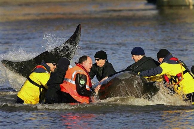 Кита, заплывшего в Темзу в 2006 году, пытались спасти. Но безуспешно. Он в итоге погиб