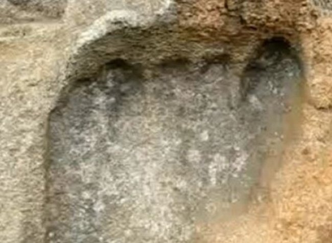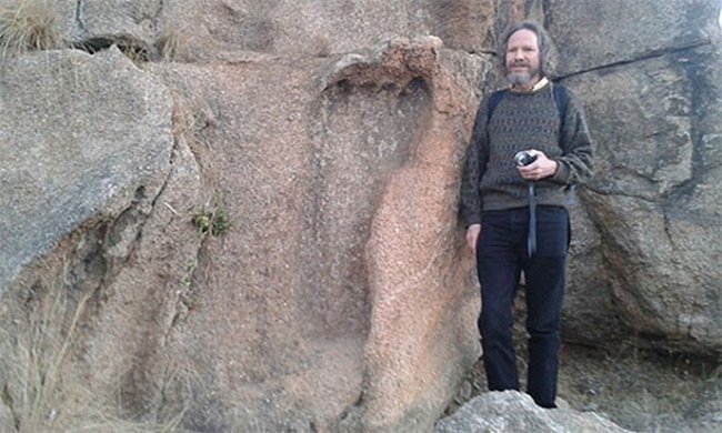 «При своих огромных размерах он вдавлен в скалу на целых шесть дюймов (15 см). Чтобы вырубить такую подделку в твердом граните, а не в податливом песчанике или известняке, понадобился бы титанический труд. К тому же поверхность ступни абсолютно гладкая, без всяких следов обработки. Очевидно, когда-то плита располагалась горизонтально, а более поздние сейсмические подвижки поставили ее вертикально», — пишет он.