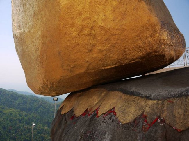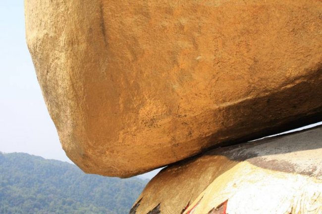 Уже 2500 лет над пропастью, что разверзлась у горы Чайттийо в Мьянме, нависает огромный камень. Объяснить, как многотонный валун до сих пор не сорвался с обрыва, не может никто. Жители Мьянмы уверены, что только Божье провидение способно удержать этот камень от падения.