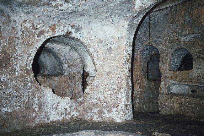 Однажды стройку посетил иезуит отец Эммануил. Он сумел осознать значение этой находки и добился у городских властей разрешения начать раскопки. Внутри подземной полости со множеством конусообразных и яйцеобразных помещений иезуит обнаружил человеческие скелеты, из-за чего вначале предположил, что здесь находится кладбище катакомбной церкви первых лет христианства.