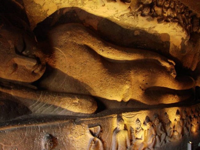 Неподалеку от селения Аджанта британцы выследили тигра, и в пылу погони Смит забрел в ущелье, буйно поросшее тропическими растениями. Когда лес перед ним расступился, от удивления он выронил ружье. Прямо на него бесстрастно взирал каменный Будда. Англичанин сделал несколько шагов вперед и увидел, что прямо в скале высечены ходы, ведущие вглубь горы.