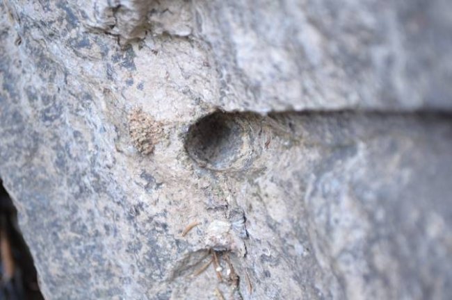 Как сообщают Елена и Сергей Афоничевы, открывшие находку, диаметр отверстий составляет 25 мм, глубина около 400 мм. Следы бурения прямые на всю глубину отверстий, имеют видимые риски по стенкам.