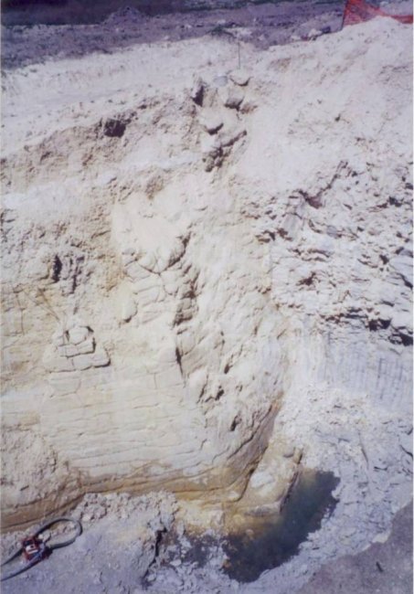Но после исследования он предположил, что это природное образование. «Геологическое образование, возникшее в результате подъёма мелкого песка через разломы в залегающей выше твёрдой глине, уникально, если не сказать больше. Под воздействием кальцита песок затвердел и превратился в плотный и твёрдый камень. Самое поразительное в том, что разломы в стене из песчаника стали похожи на кирпичную кладку», - пишет он в своём блоге.