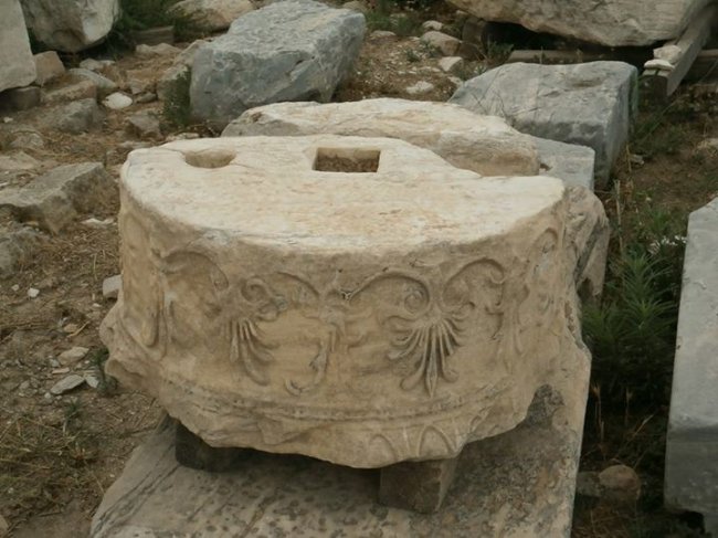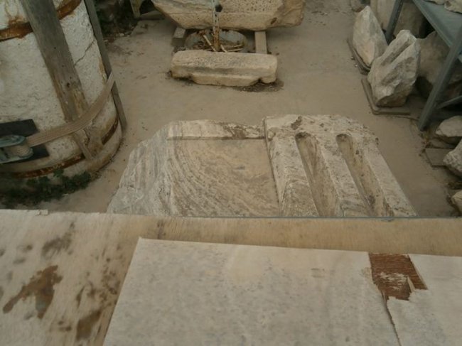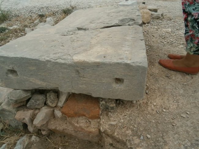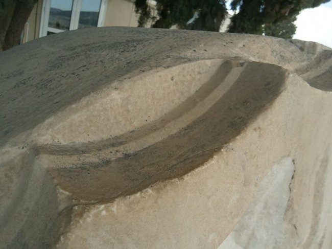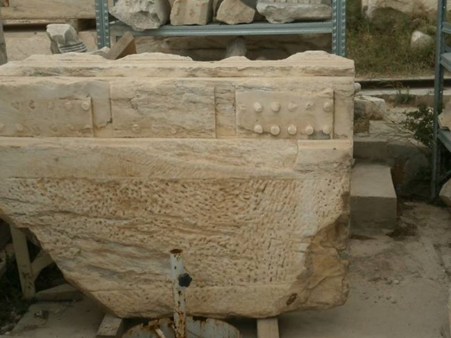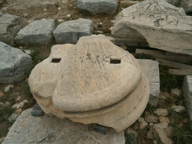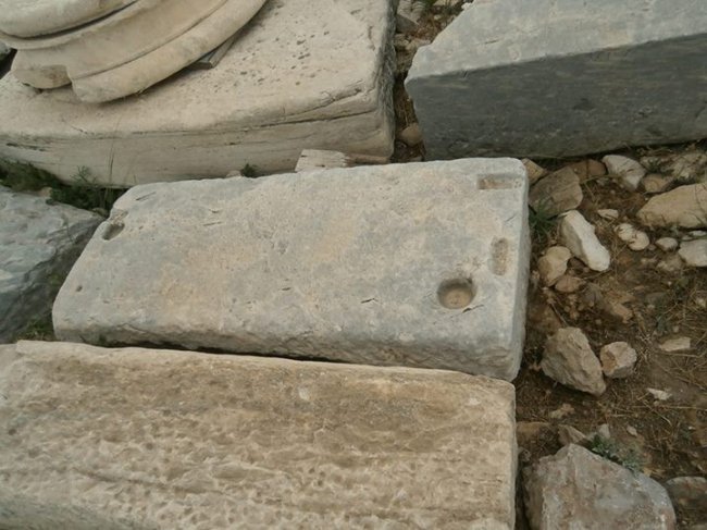 Блок колонны. Абсолютно ровная полированная поверхность на которой сделаны грубые насечки зубилом. Отверстие в центре блока! Зачем? Если скреплять блоки между собой и предотвращать сдвиги, то стержень должен быть из хорошей легированной стали. В википедии написано про деревянные пробки и шквортни ?