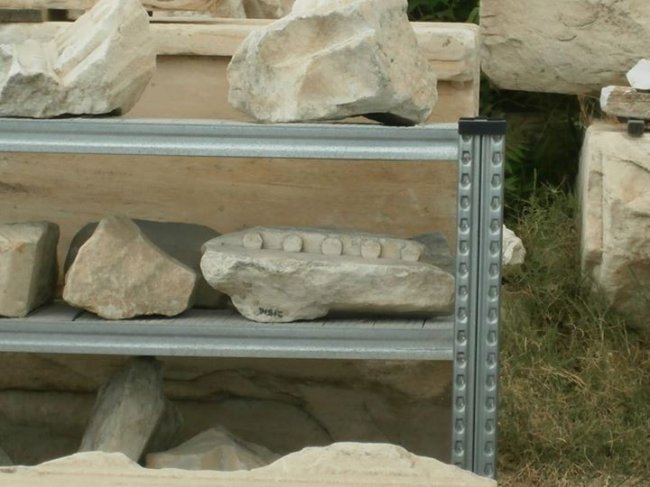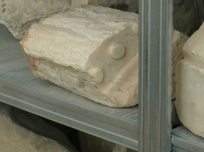 Квадратные пазы на колонне и вырезы на блоке справа.