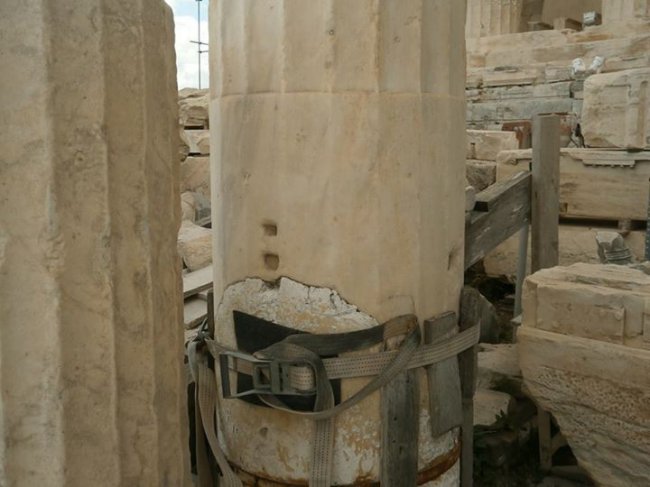 Осмотрев Парфенон, стало интересно, как он был построен и какие технологии были использованы. К камням близко охранники не пускают, но кое что интересное удалось сфотографировать.