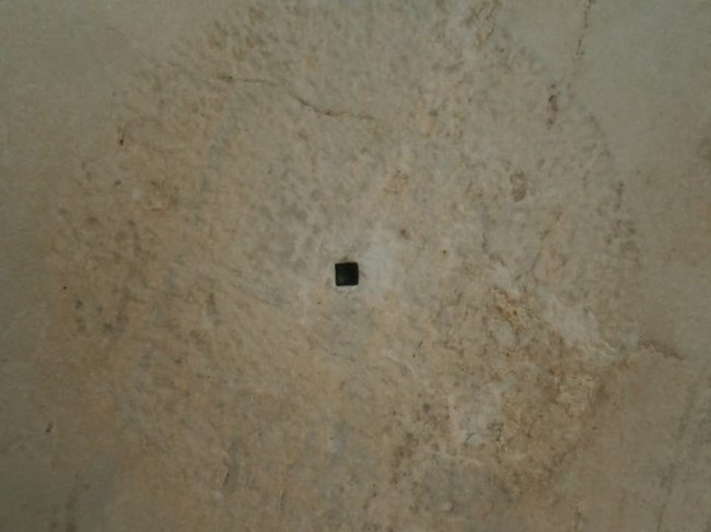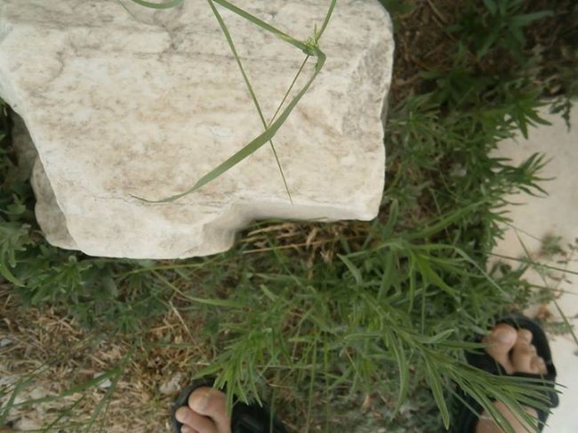 Квадратный паз в центре и круглый сбоку. Что бы не перепутать при сборке? Очень хотелось рулеткой померить размеры украшений на колонне, насколько они совпадают между собой. Охранник ходил следом и отгонял от камней.