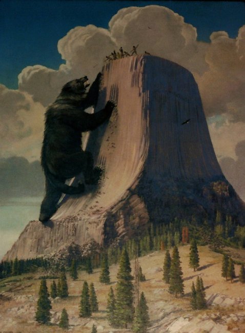 Одна из индейских легенд повествует о семи девочках, игравших в лесу, когда на них напал гигантский медведь. Дети попытались убежать, но медведь не отставал. В отчаянии они взобрались на невысокий камень и взмолились о спасении Великому духу. Дух услышал их, и камень начал постепенно расти, поднимая девочек все выше над разъяренным зверем. В ярости тот попытался взобраться на скалу, но ему это не удалось, а на скале остались следы его когтей. Башня дьявола же продолжала расти, пока девочки не смогли перейти на небо, где превратились в звезды Плеяды. С этим мифом связано одно из индейских названий горы — Mato Tipila (Медвежья берлога).