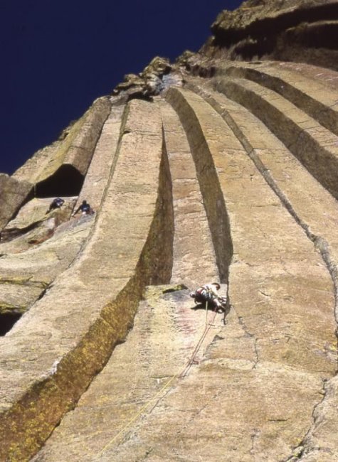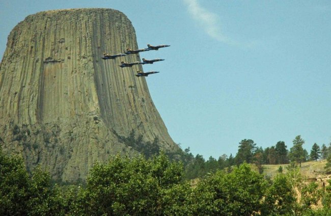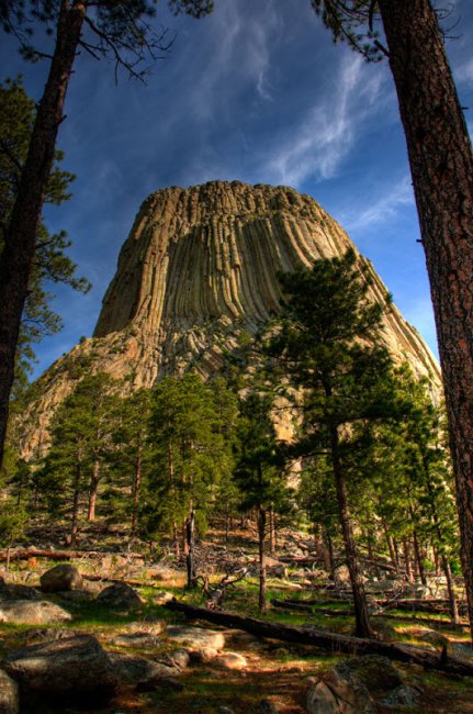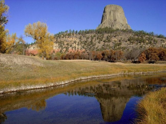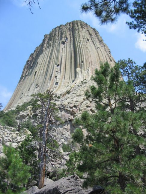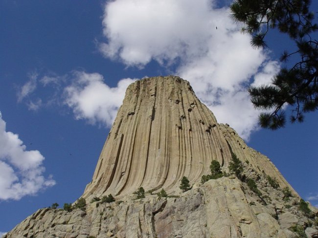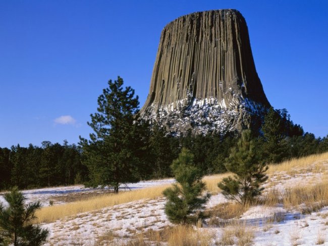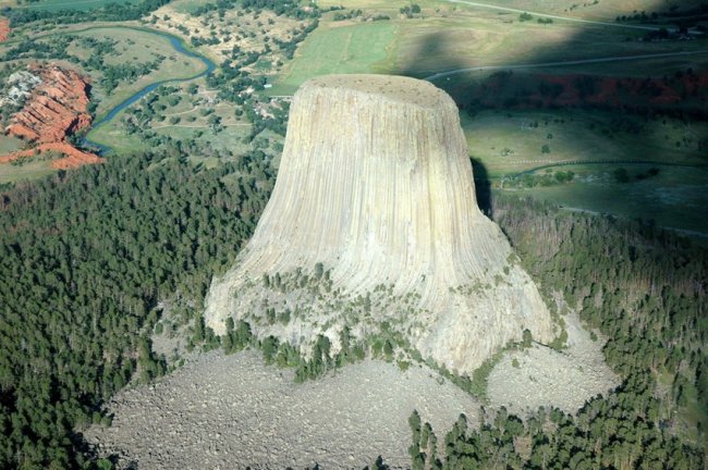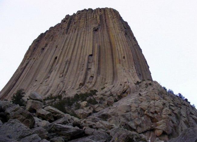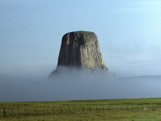 Таинственная Башня дьявола (Devils Tower) расположена на северо-востоке штата Вайоминг (США). Ее высота 386 м, что сопоставимо с высотой Эмпайр-стейт-билдинг (381 м без шпиля). Образовалась скала порядка 65 млн. лет назад в результате вулканической активности, а необычные фигурные ее бока стали следствием эрозии окружающих мягких пород вокруг более прочных внутренних. Но, естественно, существуют и другие версии ее происхождения…